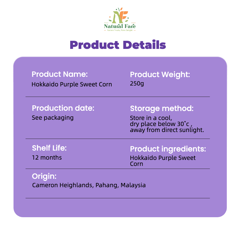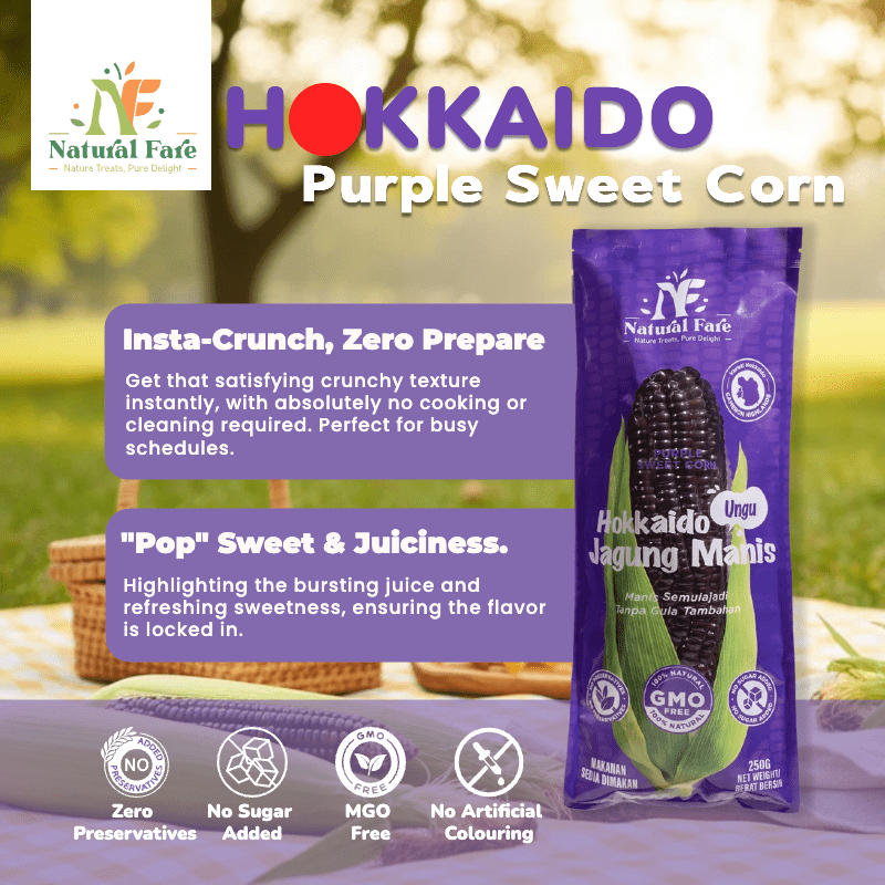 Key Benefit: Purple corn (Jagung Ungu) is naturally rich in Anthocyanins, a powerful antioxidant that gives it its purple color. These antioxidants are often linked to heart health and anti-inflammatory benefits.